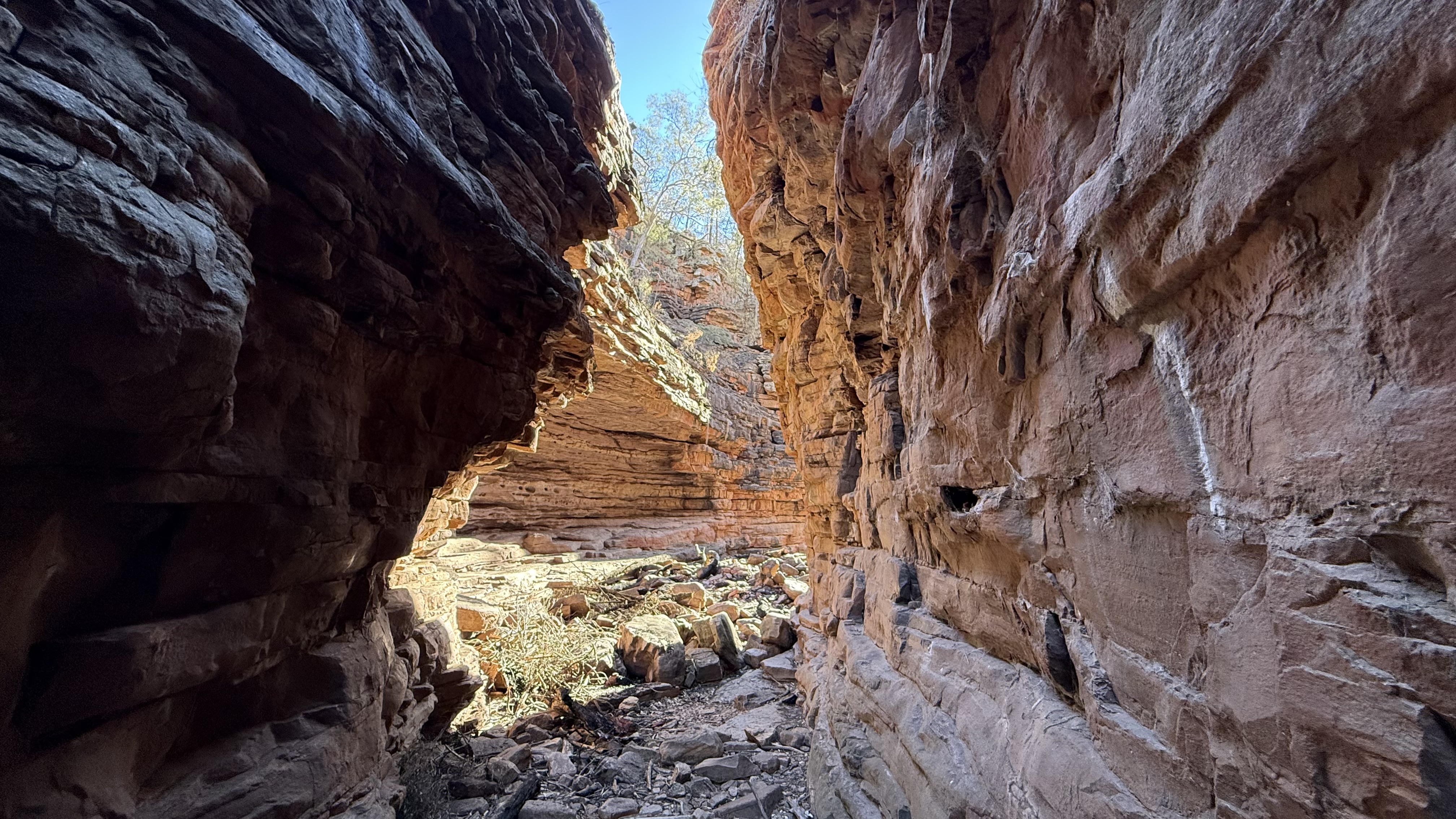 Our first stop in the southern Flinders Ranges was a beautiful country town called Melrose. It is a popular mountain biking area and is where you can hike Mt Remarkable. We did this 16km hike, which was pretty tough going due to so many rocks. The summit was 960m which we reached via the southern path, but heading down the northern path was a lot harder. After walking for 5 hours we were ready for a cold drink and a sit by the fire. Paddy had the guitar out and we enjoyed a star spectacular that night. We also spent a morning hiking through Alligator Gorge, which was hit by fire in February this year and has only just opened. It was strange to walk through the blackened area so soon after fire. Some regrowth is beginning to happen and we both talked about definitely revisiting the area in years to come to see the change.